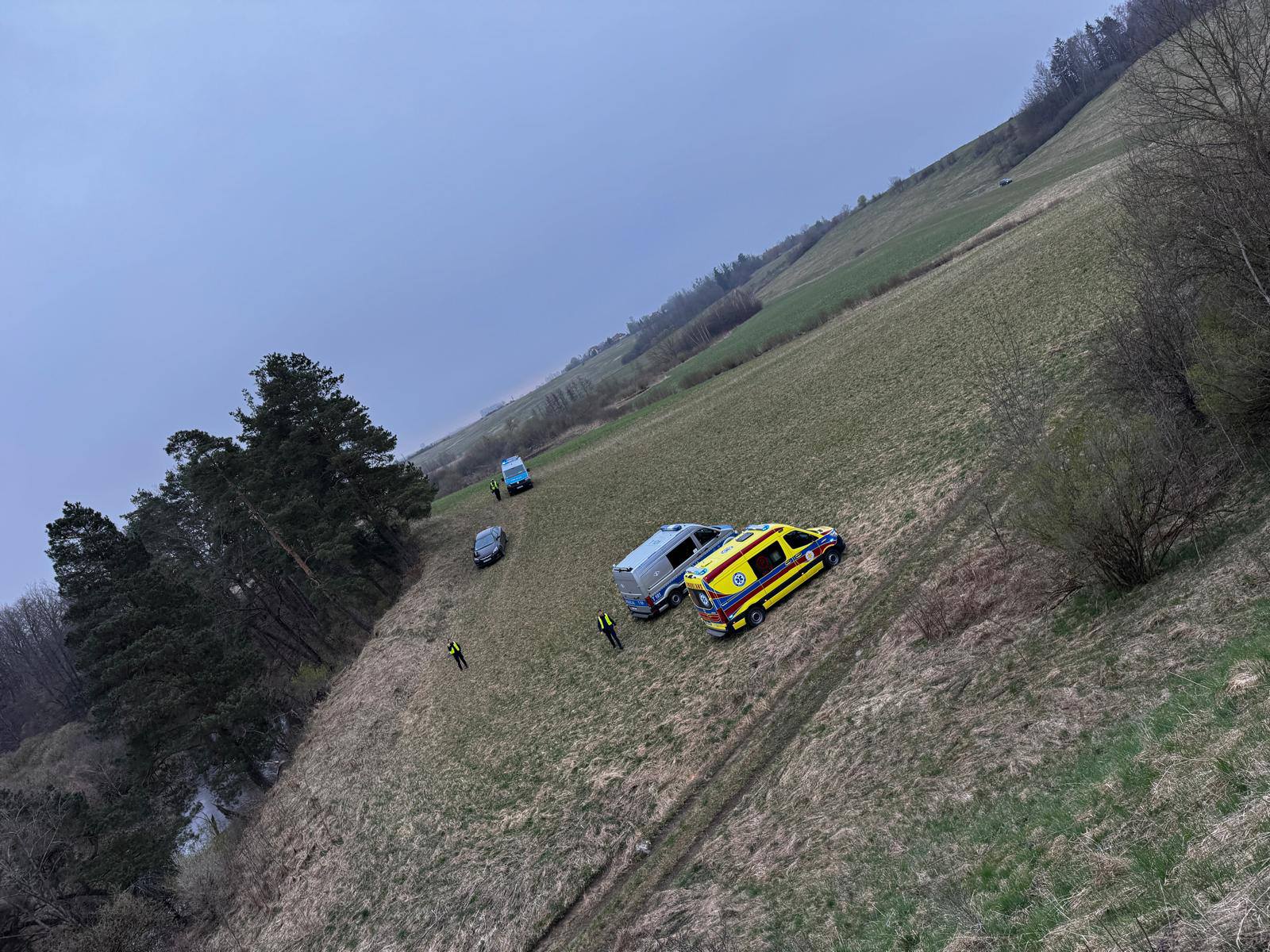 Na miejscu pracują policjanci oraz prokurator, którzy ustalają dokładne okoliczności zdarzenia.
